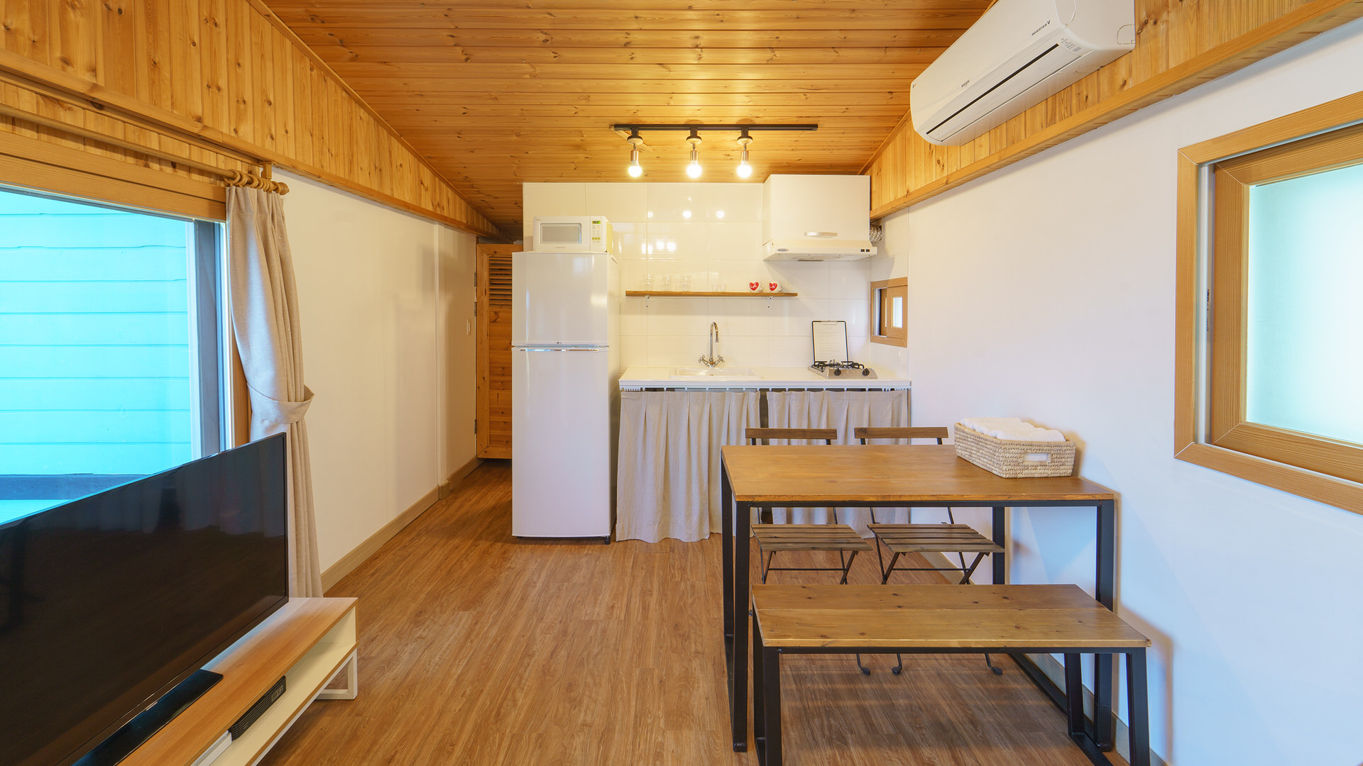- 집기품목 : TV, 개별바비큐, 금연, 냉장고, 드라이기, 린스, 바디워시, 샴푸, 에어컨, 와이파이, 가스레인지, 전자레인지, 취사시설/도구, 커피포트, 타월, 테라스, 비누, VOD, 바다전망