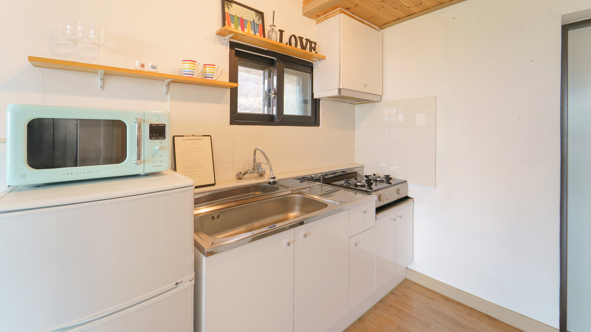 - 집기품목 : TV, 가스레인지, 개별바비큐, 금연, 냉장고, 드라이기, 린스, 바디워시, 샴푸, 에어컨, 와이파이, 인덕션, 전자레인지, 커피포트, 타월, 테라스, 취사시설/도구, 비누, VOD, 바다전망